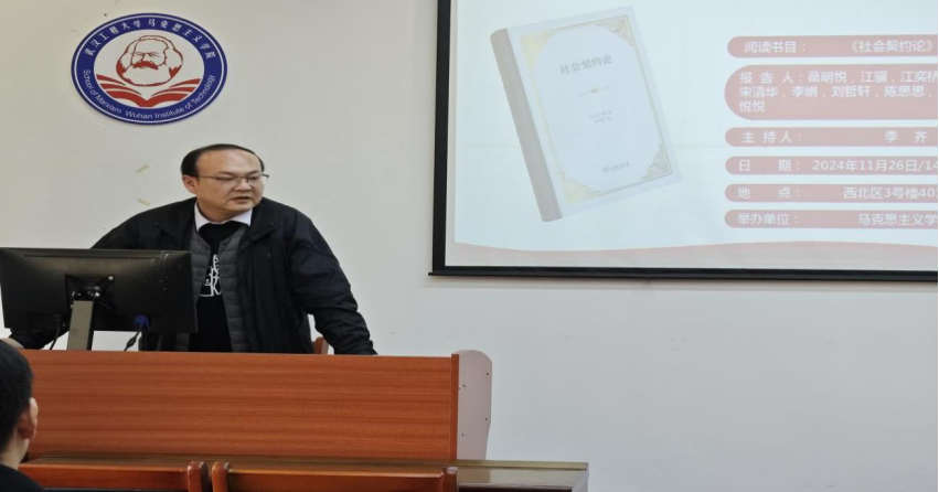 李娟分享了《社会左券论》第二卷前三章的阅读心得,,,, ,,指出主权理论对现代政治的影响,,,, ,,同时也指出了其理论的局限性:操作性不及、忽视私有财富。。。。。。。。刘哲轩结合社会左券论中的人民主权理论给各人带来了他的见解:民主思想视域下的中国式民主分析,,,, ,,指出对卢梭的民主思想是推动中国式民主发展的基石。。。。。。。。陈思思从财富权、民主造和公民宗教三个主题进行了读后感分享。。。。。。。。