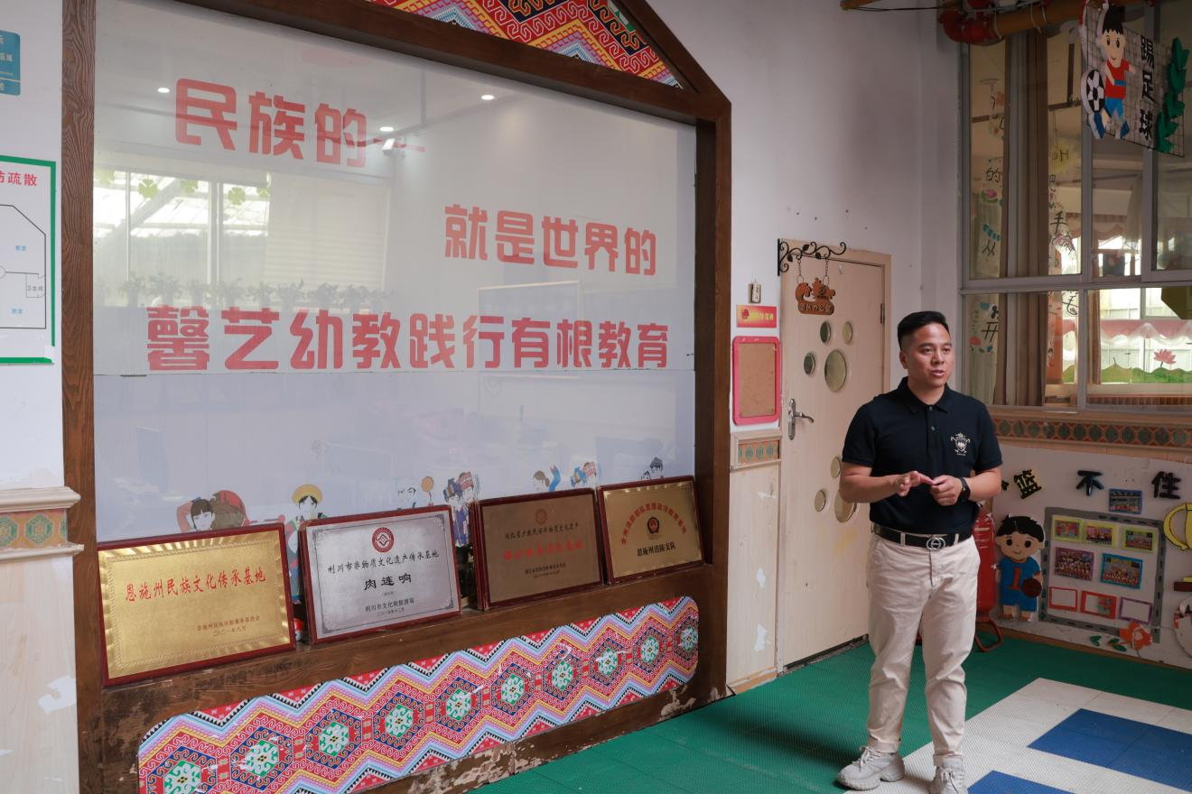 早晨的利川市馨艺幼儿园,,,,,,,园里总是能传出阵阵富有节拍的拍打声,,,,,,,这是幼儿园的学生随着教员一路抖动肩膀,,,,,,,拍打手脚——正是该园特色课程肉连响的日常操练场景。。。。。。。刘守红创办馨艺幼儿园,,,,,,,以传承传统文化为办学宗旨,,,,,,,创新性地把肉连响、利川灯歌等民族文化和中国传统风俗、节俗和传统跳舞融进幼教工作中,,,,,,,让幼儿意识传统节日,,,,,,,造就爱国周到,,,,,,,加强民族自负,,,,,,,厚植文化认同感。。。。。。。刘守红说:“要让年轻人从幼就设置梦想信想,,,,,,,加强民族自负,,,,,,,文化自负”,,,,,,,让传统文化鄙人一代心中播下但愿的种子。。。。。。。