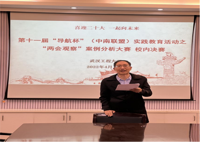 (通讯员庄芩)4月17日下午,,,,,“喜迎二十大、一路向将来”——第十一届“导航杯”(中南同盟)主题实际教育活动之“两会观察”案例分析大赛武汉工程大学赛区决赛在JDB电子官网二楼会议室顺利进杏祝。。。。。。。JDB电子官网副院长常城、靖】潆政策教研室主任陈永贵以及三位青老大师出席了这次角逐并担任评委。。。。。。。。