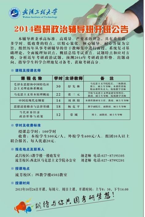 2014年政治考研领导班开班布告