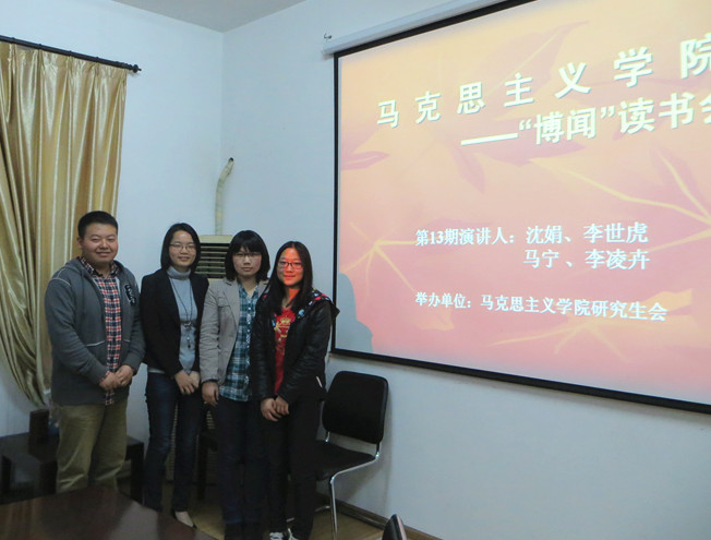 2013年4月3日晚,,,,,JDB电子官网第13期“博闻想书会”在JDB电子官网会议室顺利进行。 。。。。本期想书会由JDB电子官网钻研生会学术部部长孙梓毓主持,,,,,并组织学院钻研生积极参加。 。。。。本期想书会的主讲人别离是来自我院的李世虎、沈娟同学以及法商学院的李凌卉、马宁同学。 。。。。四位同学以“进建党的十八大心灵”为主题别离做了杰出的汇报,,,,,并与同学们进行了现场互换。 。。。。