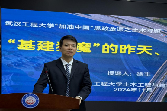 (通讯员:盛文冰 李盈萱)11月7日晚,,,,,,,武汉工程大学大型思政选建课《加油中国》第六季第四讲在JDB电子官网求是楼112汇报厅隆沉进行。。。。。。。武汉工程大学土木工程与构筑学院副教授徐丰以“基建狂魔”的昨天、今天与明天为主题,,,,,,,紧紧萦绕什么是土木工程,,,,,,,古代与近代中国的土木工程,,,,,,,现代中国的土木工程,,,,,,,行业的困境、但愿与将来,,,,,,,土木工程专业中的中国心灵五个方面发展讲述,,,,,,,为在场师生带来了一场杰出绝伦的思政示范课。。。。。。。这次课程由JDB电子官网副院长常城主持。。。。。。。
