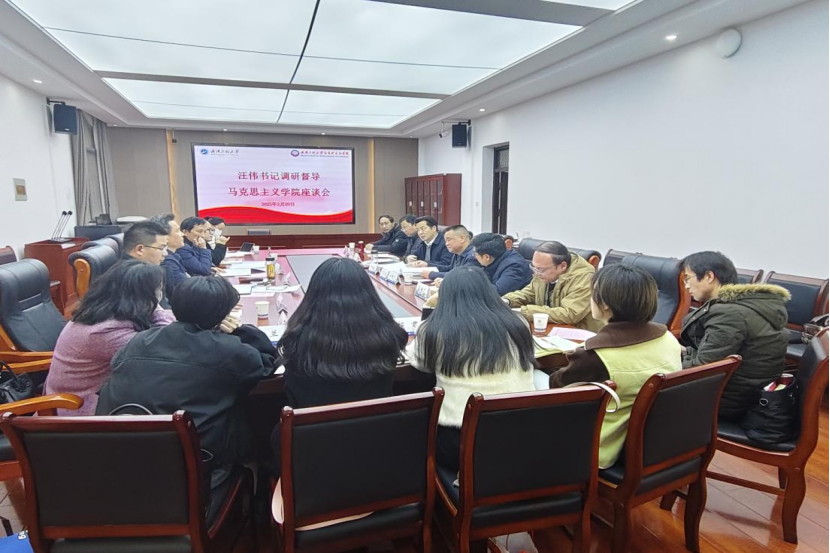 (通讯员:张雪姣)2月20日下午,,,,,,,,校党委书记汪伟深刻JDB电子官网,,,,,,,,调研督导学院2025年度沉点工作及标志性项目造订情况。。。。。。。学堂党政办公室主任但继恩陪同调研,,,,,,,,马克思主义学院辅导班子整个成员、教研室主任及老师代表参与了调研座谈会。。。。。。。