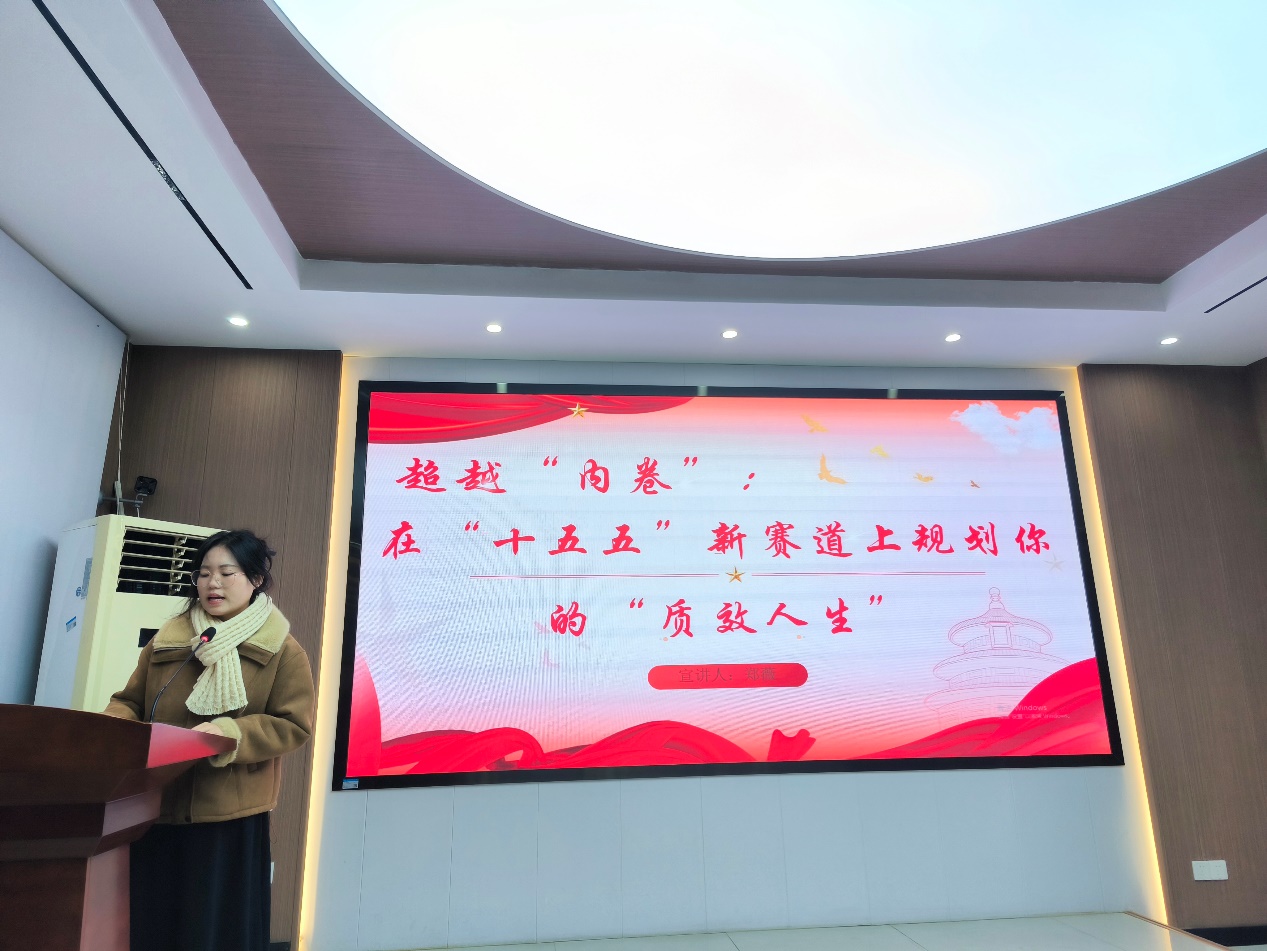 第三讲着眼“幼我发展”与“实际认知”。。。。。。。12月24日,,,,,,郑薇同学以《超过“内卷”:在“十五五”新赛路上规划你的“质效人生”》为题,,,,,,回应青年成长猜疑,,,,,,疏导学子设置正确的发展观、奋斗观。。。。。。。陈梦月同学则以《行走的思政课:在红色足迹中读懂“中国式现代化”》为题,,,,,,提倡理论联系现实,,,,,,在沉浸式履历中深入对“中国式现代化”内涵的理解与认同。。。。。。。