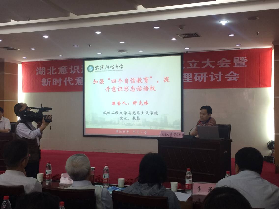 我院舒先林教授在大会上受聘为湖北意识状态建设钻研院征询专家,,,,,并作了题为《加强“四个自负”教育,,,,,提升意识状态话语权》的专题汇报。。。。。。。。汇报以为:思政课老师是高校意识状态建设的主力军,,,,,在教育讲授过程中,,,,,肯定要设置责肆意识、阵地意识和问题意识;;;;;;;高校主流意识状态内涵建设应萦绕“四个自负」毓开,,,,,思政课教育讲授必须增壮大学生对“四个自负”的理解和认同;;;;;;;“四个自负”背后的逻辑现实上是“价值自负”,,,,,要通过加强“四个自负”教育推动马克思主义中国化时期化公共化,,,,,提升国际话语权。。。。。。。。