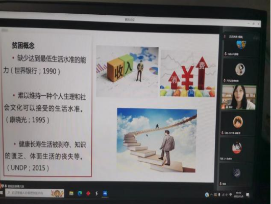 杨铭博士首先给同学们播放了视频《非凡中国非凡十年》,,,,,,,引发了同学们对中国特色社会主义进入新时期的这十年所产生变动的深刻思虑。。。。。。。十年路风雨兼程,,,,,,,九万里风鹏正举,,,,,,,新时期的伟大刷新在党史、新中国史、鼎新盛开史、社会主义发展史、中华民族发展史上拥有深远意思。。。。。。。杨铭博士从穷困的概想、穷困的衡量尺度等方面为同学们具体解读了“什么是穷困”,,,,,,,又通过播放视频向同学们展示了中国打赢脱贫攻坚战、全面建成幼康社会所获得的伟大成就。。。。。。。