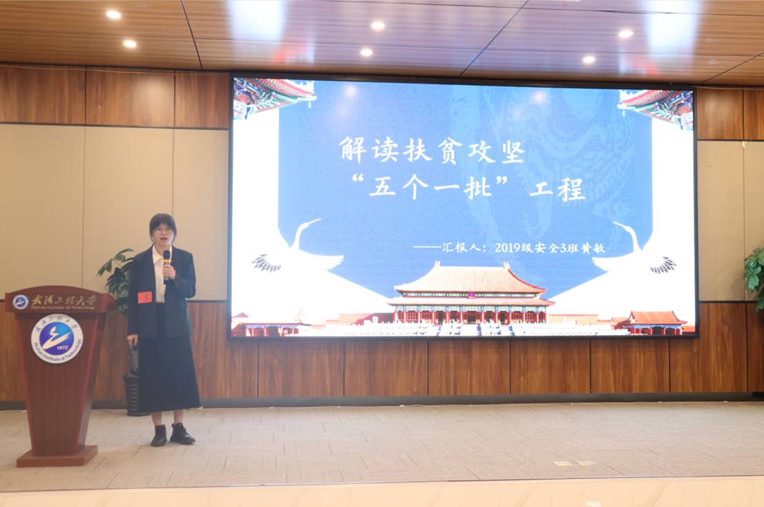 获得二等奖的第三组选手是来自资源与安全工程学院的黄敏,,,,,,她演讲的主题是“解读脱贫攻坚“五个一批”工程”。。。。。。。。她指出,,,,,,五个一批工程根基涵盖了各类穷困人丁,,,,,,是党对于穷困人丁绝不落下一户的坚定承诺,,,,,,是党在实际中总结出来的活泼经验。。。。。。。。